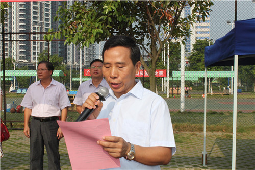 公司黃鼎龍董事長(zhǎng)宣布籃球賽開(kāi)幕