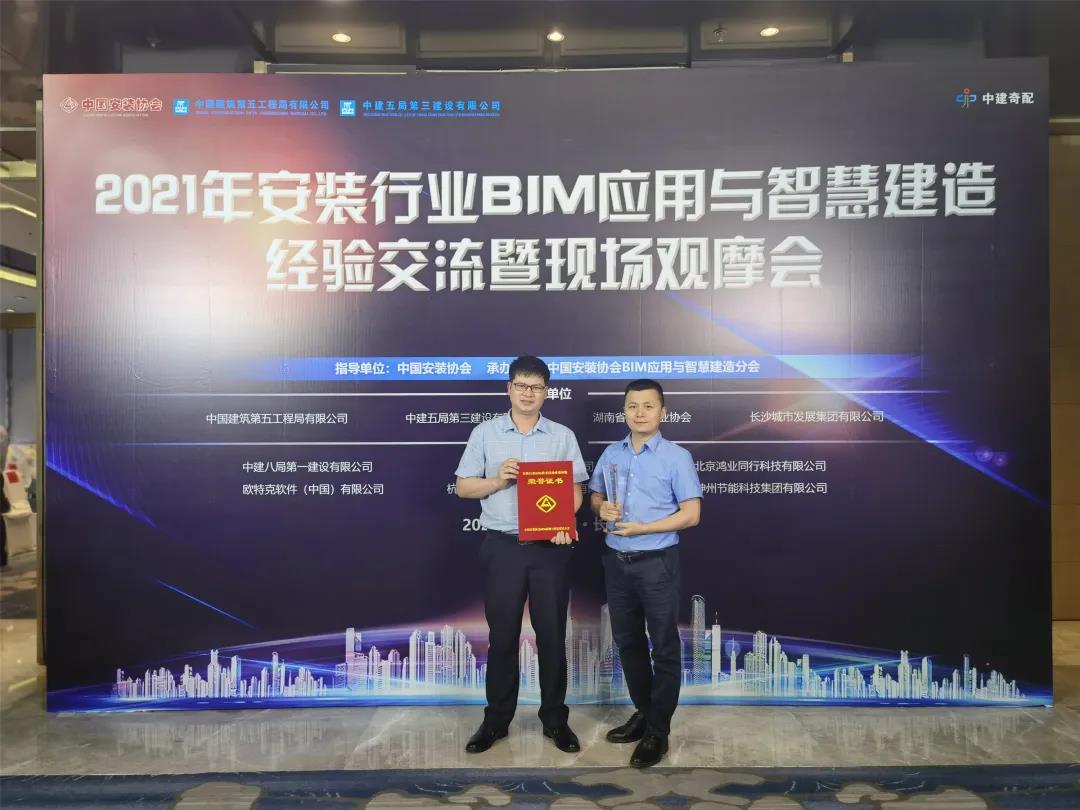 5月12日,由中國(guó)安裝協(xié)會(huì)BIM應(yīng)用與智慧建造分會(huì)承辦的2021年安裝行業(yè)BIM應(yīng)用與智慧建造經(jīng)驗(yàn)交流暨現(xiàn)場(chǎng)觀摩會(huì),在湖南省長(zhǎng)沙市召開。會(huì)上對(duì)一批2020年安裝行業(yè)BIM技術(shù)應(yīng)用成果評(píng)價(jià)活動(dòng)優(yōu)秀成果完成單位進(jìn)行表彰,公司申報(bào)的“防城港鋼鐵基地一期工程鋼結(jié)構(gòu)及非標(biāo)設(shè)備制作安裝BIM技術(shù)應(yīng)用”獲獎(jiǎng),評(píng)價(jià)等級(jí)為國(guó)內(nèi)先進(jìn)、行業(yè)領(lǐng)先(Ⅱ類)。公司質(zhì)量技術(shù)部副總經(jīng)理黃湘富,三分公司副總經(jīng)理、總工程師姜斌代表公司參會(huì)并領(lǐng)獎(jiǎng)。